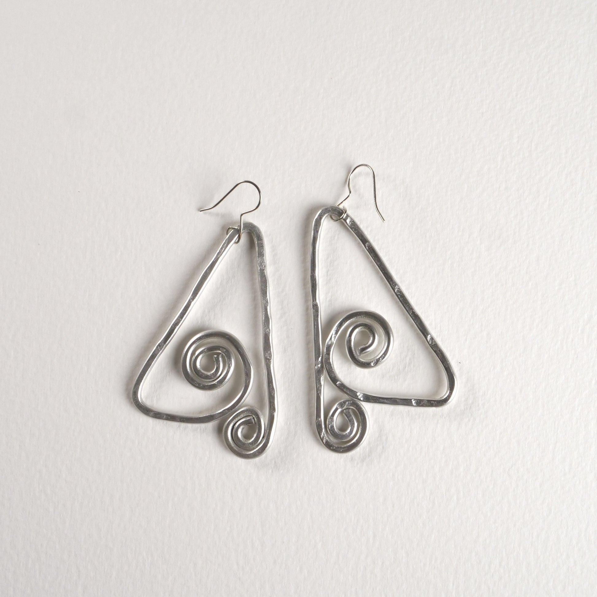 Boucles d'oreilles pendantes en spirale géométrique forgées à la main