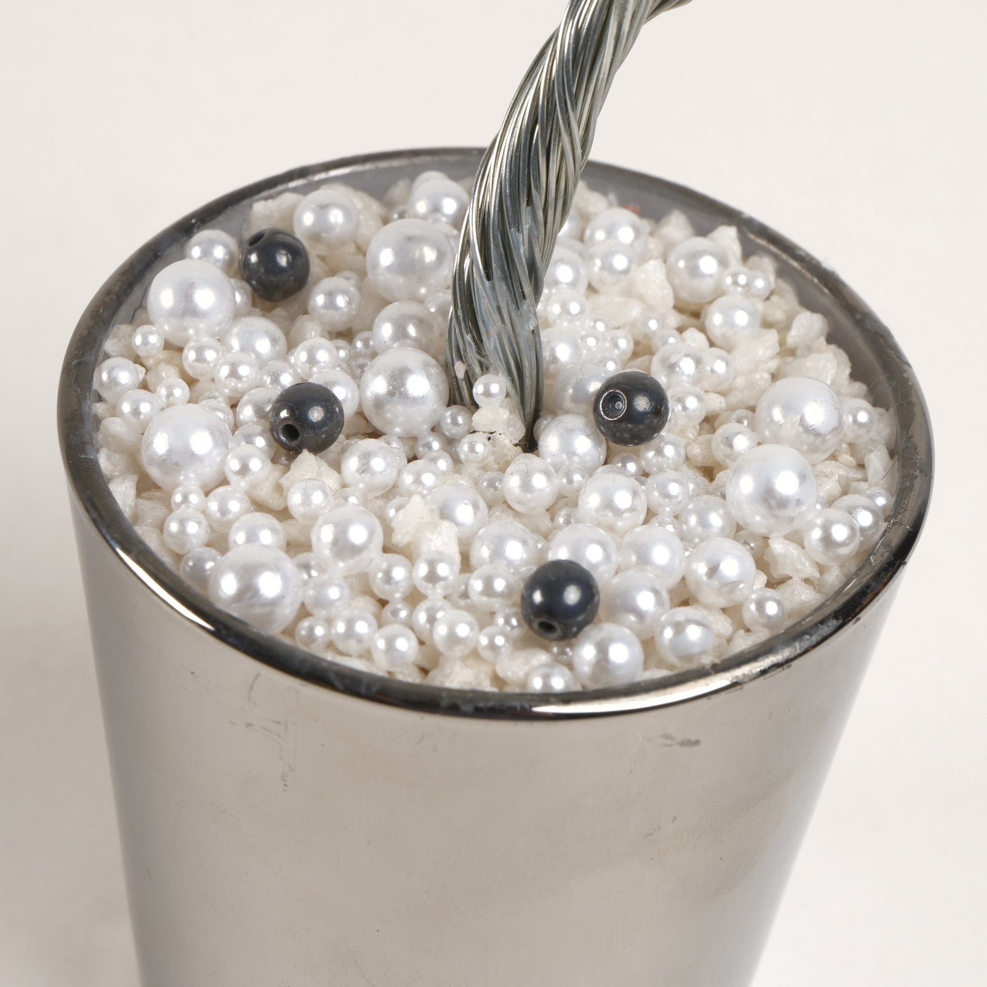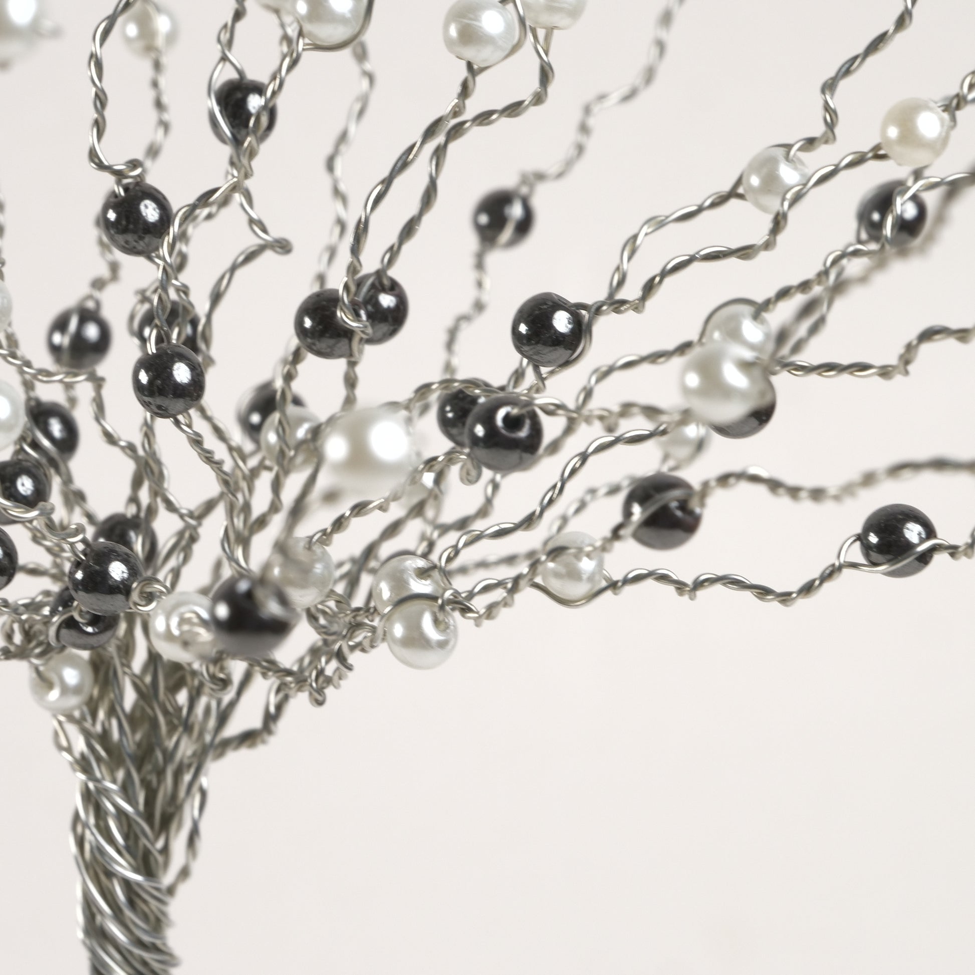 Un arbre minimaliste saisissant, réalisé en fil de fer argenté, aux lignes épurées et à la forme harmonieuse. Présenté dans un élégant bol en métal au design moderne, il s'intègre parfaitement dans un décor contemporain.