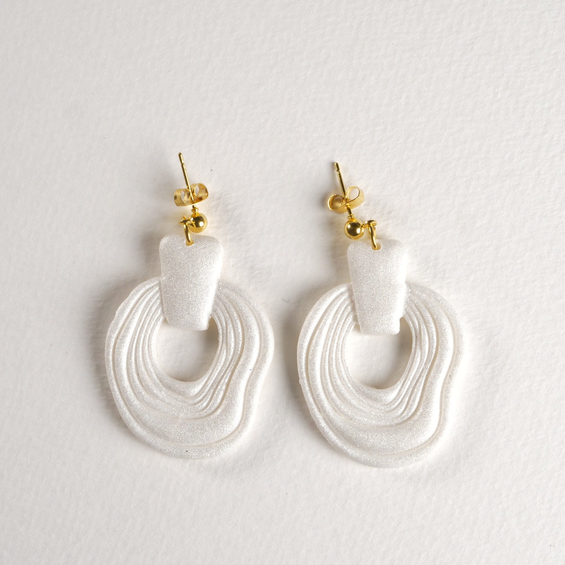 D'audacieux disques en polymère arborent un charmant motif marguerite doré pour un contraste saisissant. Orné d'un clou martelé, ce design aux techniques mixtes apporte une touche artistique à toutes vos tenues.