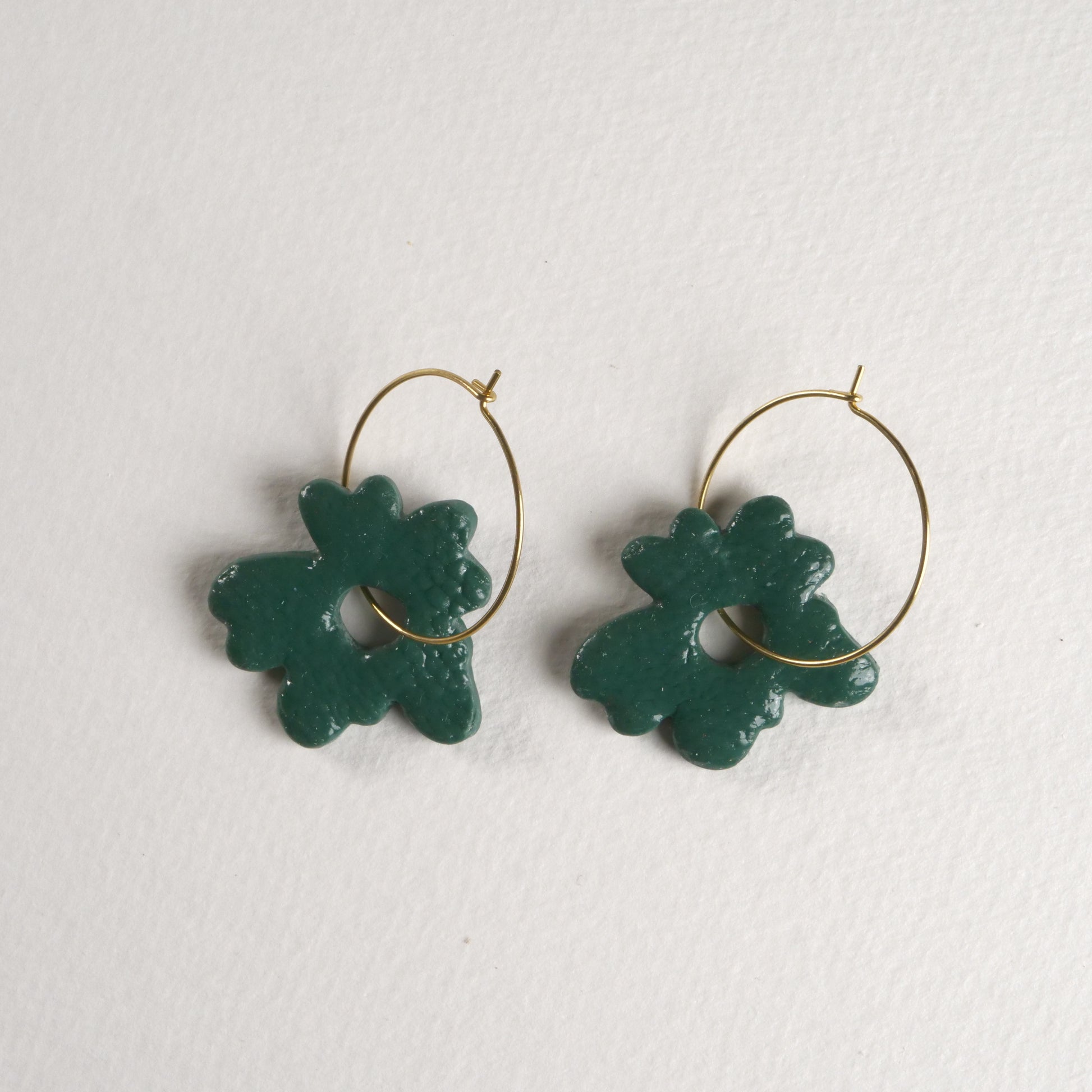 Delicate, hand-sculpted polymer clay petals dance gracefully on slender gold hoops. A whimsical and versatile design, perfect for adding a touch of natural charm to any look.
