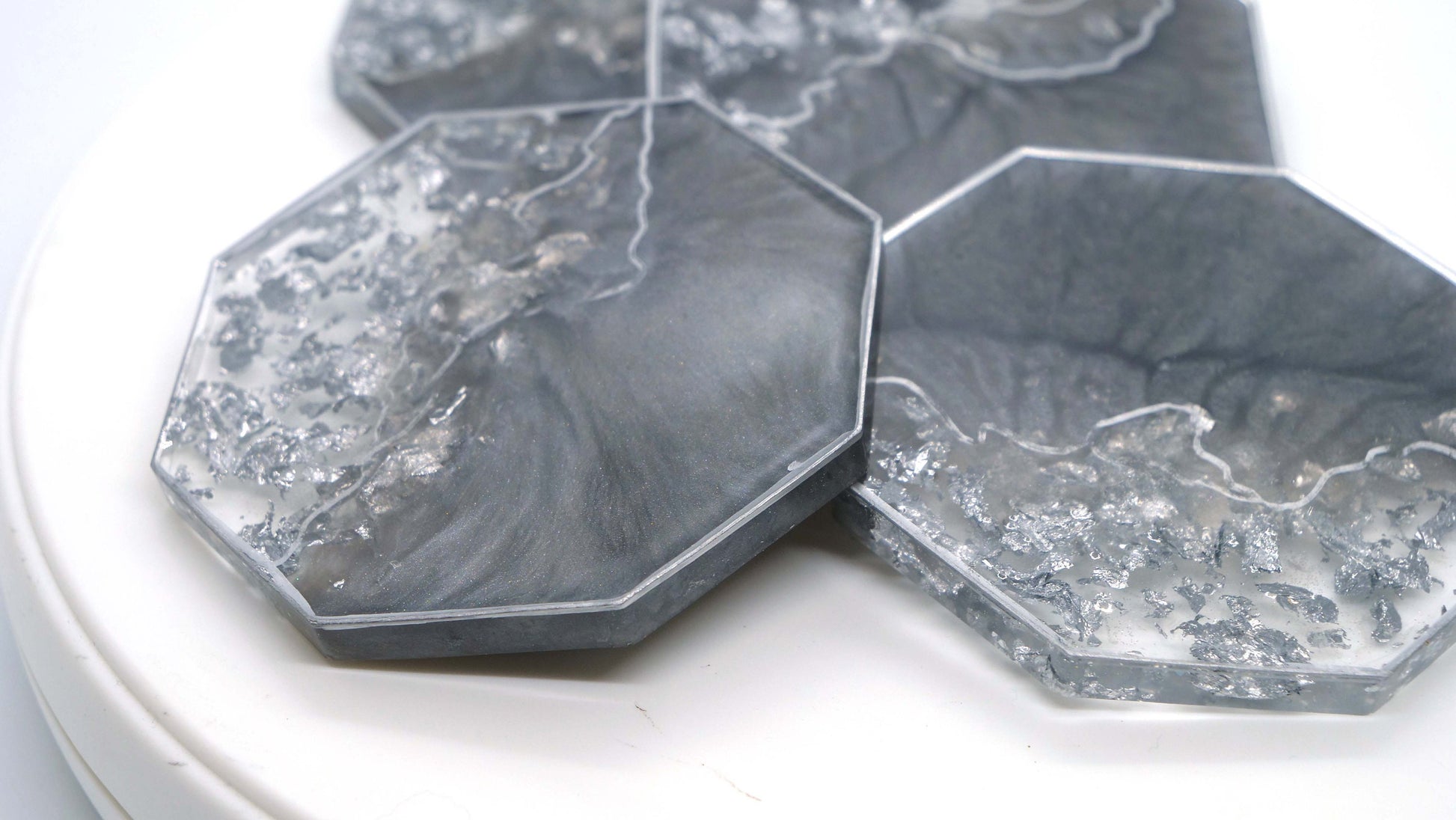 Hexagon Resin Coaster Set (4) with Silver Leaf